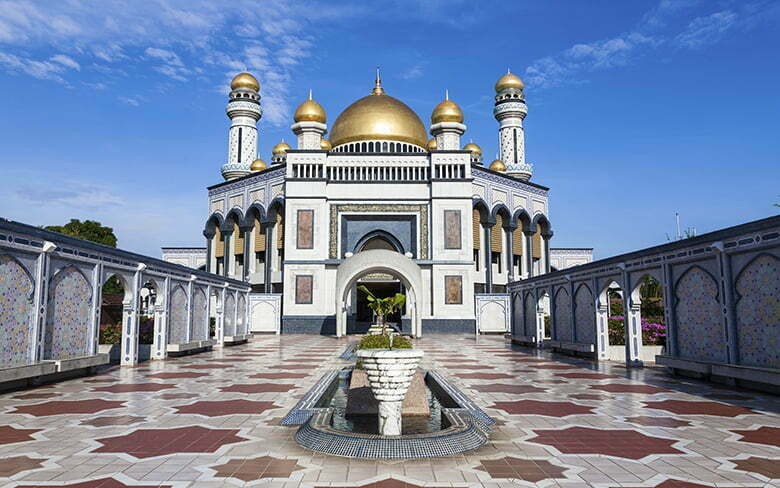有「國王的清真寺」美譽,是汶萊最大的清真寺、世上最先進的清真寺之一,擁有29座鍍24K純金洋蔥式金頂,氣勢輝煌,被譽為全球造價最高的清真寺之一。