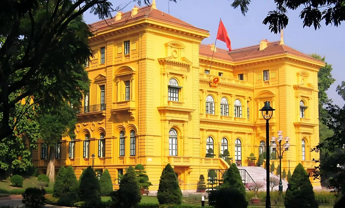現名《主席府》建於1906年的黃色法式建築,原是殖民時期印度支那的總督府,為胡志明主席處理國政之處。目前為越主席理府,如遇外賓來訪,常常可以見到外賓國的國旗飄揚。