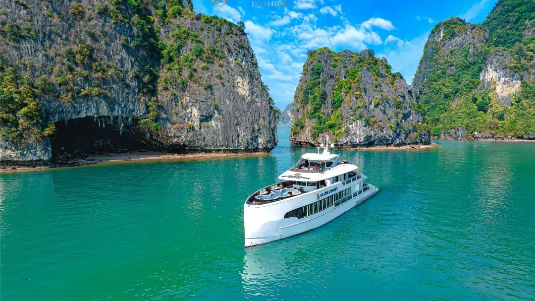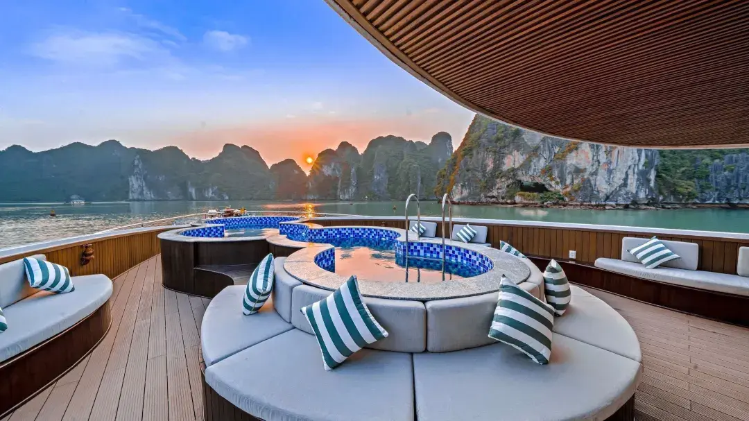 下龍灣交響號郵輪於2024年下水,是一艘現代化的鋼製郵輪,將現代設計與優雅的傳統木質內裝完美融合。郵輪最多可容納130名乘客,帶您體驗私密而奢華的旅程,領略聯合國教科文組織世界遺產下龍灣的魅力。船上的賓客可享受各種高端設施,例如配備舞台和LED螢幕的寬敞餐廳、時尚的酒吧和空中酒吧、兩個配備日光浴床的寬敞日光浴平台以及按摩浴缸。無論您是享用美味佳餚,還是悠閒地欣賞壯麗的海灣景色,交響號郵輪都能為您帶來真正難忘的體驗,將舒適、時尚與越南最具標誌性的旅遊勝地下龍灣的自然美景完美融合。